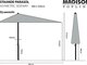 Deze parasol is vergelijkbaar met een zweefparasol en kan vanwege zijn afmeting gecombineerd worden met een tafel. Het frame van de parasol is 48mm dik en uitgevoerd in een antraciet kleur. Het 220 grams doek van de parasol is volledig gemaakt van polyester en voorzien van een PA coating. Hierdoor is het doek water- en vuilafstontend en tevens 2000 zonuren beschermd tegen verkleuring. Het openen en sluiten van de parasol gaat gemakkelijk met behulp van een opendraaisysteem. Door het grote oppervlak en de assymetrische paal is deze parasol meer windgevoelig dan een normale stokparasol.