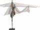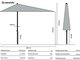 Deze parasol is vergelijkbaar met een zweefparasol en kan vanwege zijn afmeting gecombineerd worden met een tafel. Het frame van de parasol is 48mm dik en uitgevoerd in een antraciet kleur. Het 220 grams doek van de parasol is volledig gemaakt van polyester en voorzien van een PA coating. Hierdoor is het doek water- en vuilafstontend en tevens 2000 zonuren beschermd tegen verkleuring. Het openen en sluiten van de parasol gaat gemakkelijk met behulp van een opendraaisysteem. Door het grote oppervlak en de assymetrische paal is deze parasol meer windgevoelig dan een normale stokparasol. Supplement cover COVGP025 voet with wheels 60kg VOE9P033